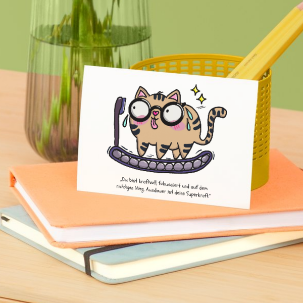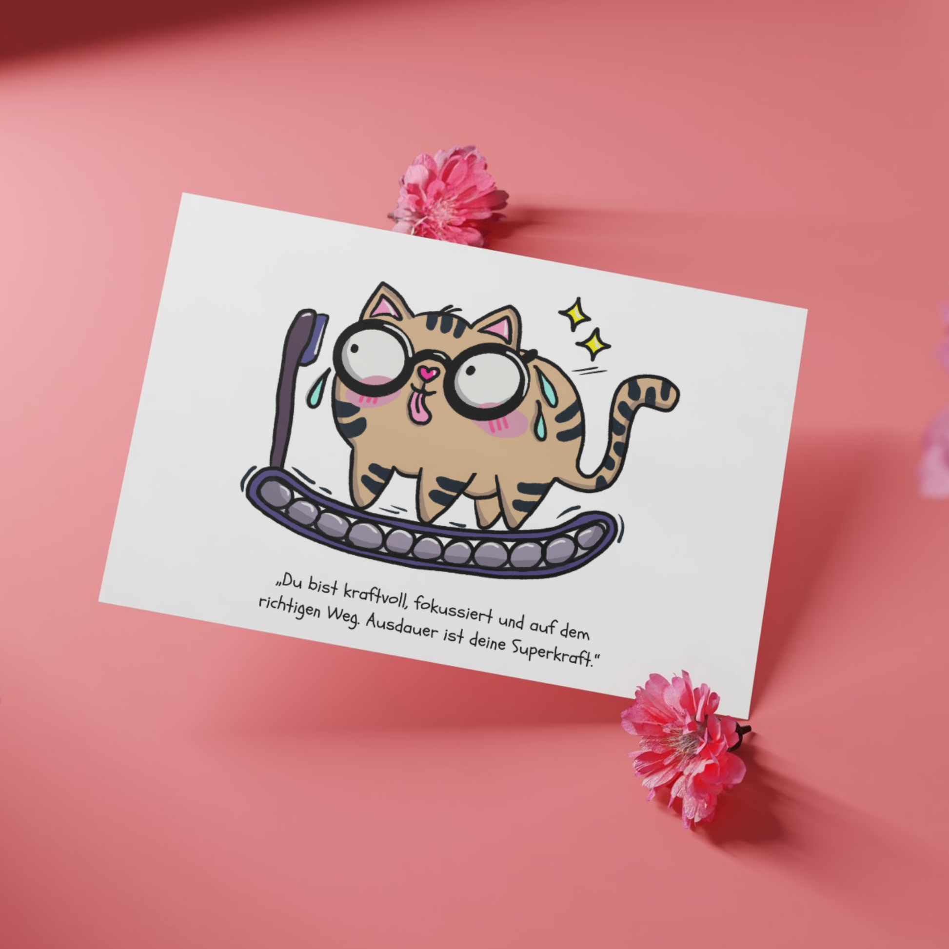Vielleicht brauchst du heute auch genau diese Erinnerung. Eine Erinnerung das du auf dem richtigen Weg bist. Die Postkarte âMieze Johann â Deine Ausdauer ist deine Kraftâ findest du in im Millicat Shop â vielleicht wird sie ja auch dein tĂ€glicher Mutmacher. Oder falls es keine Postkarte sein soll, dann vielleicht ein neuer Katzensticker, dezent an einer Trinklasche oder auf dem Laptop.