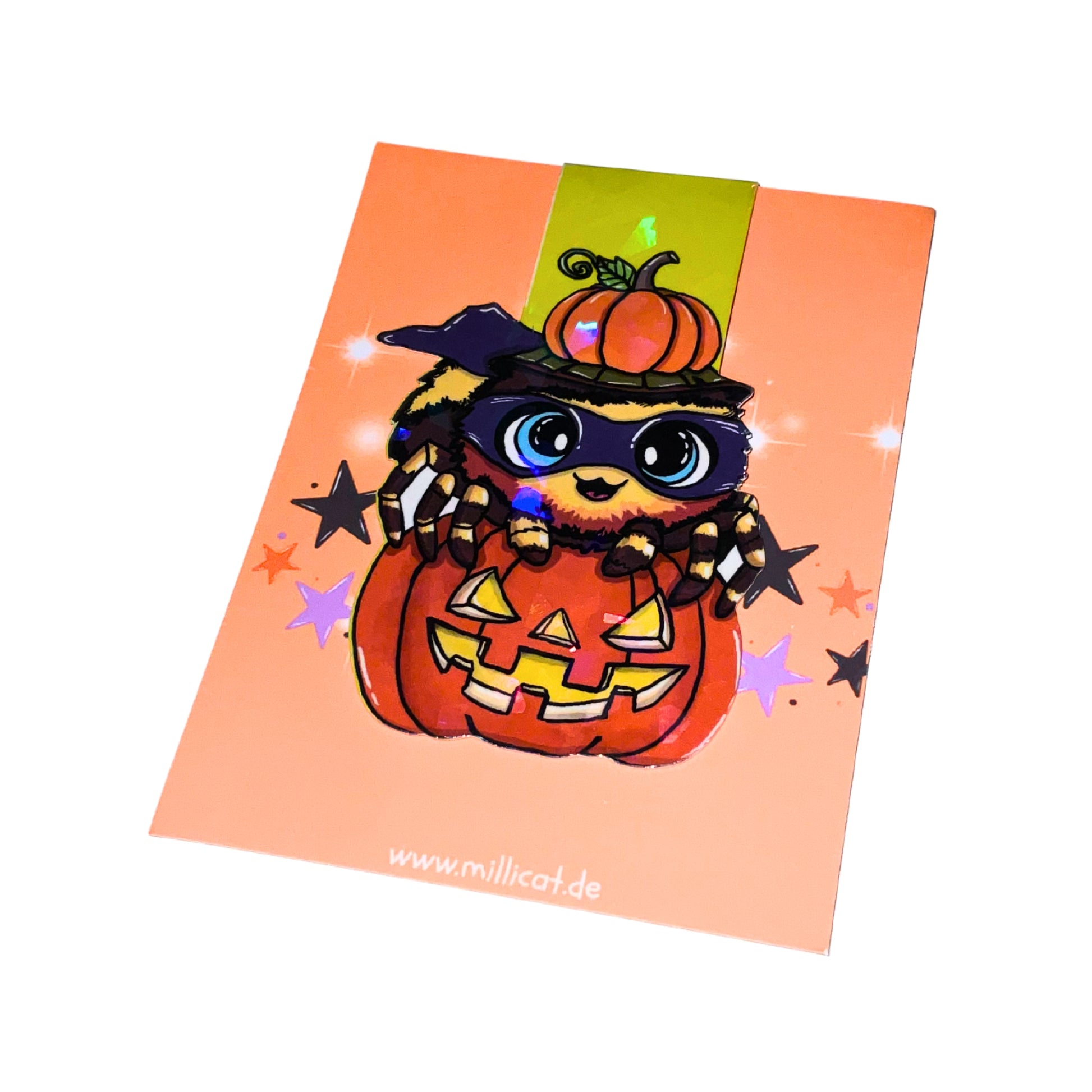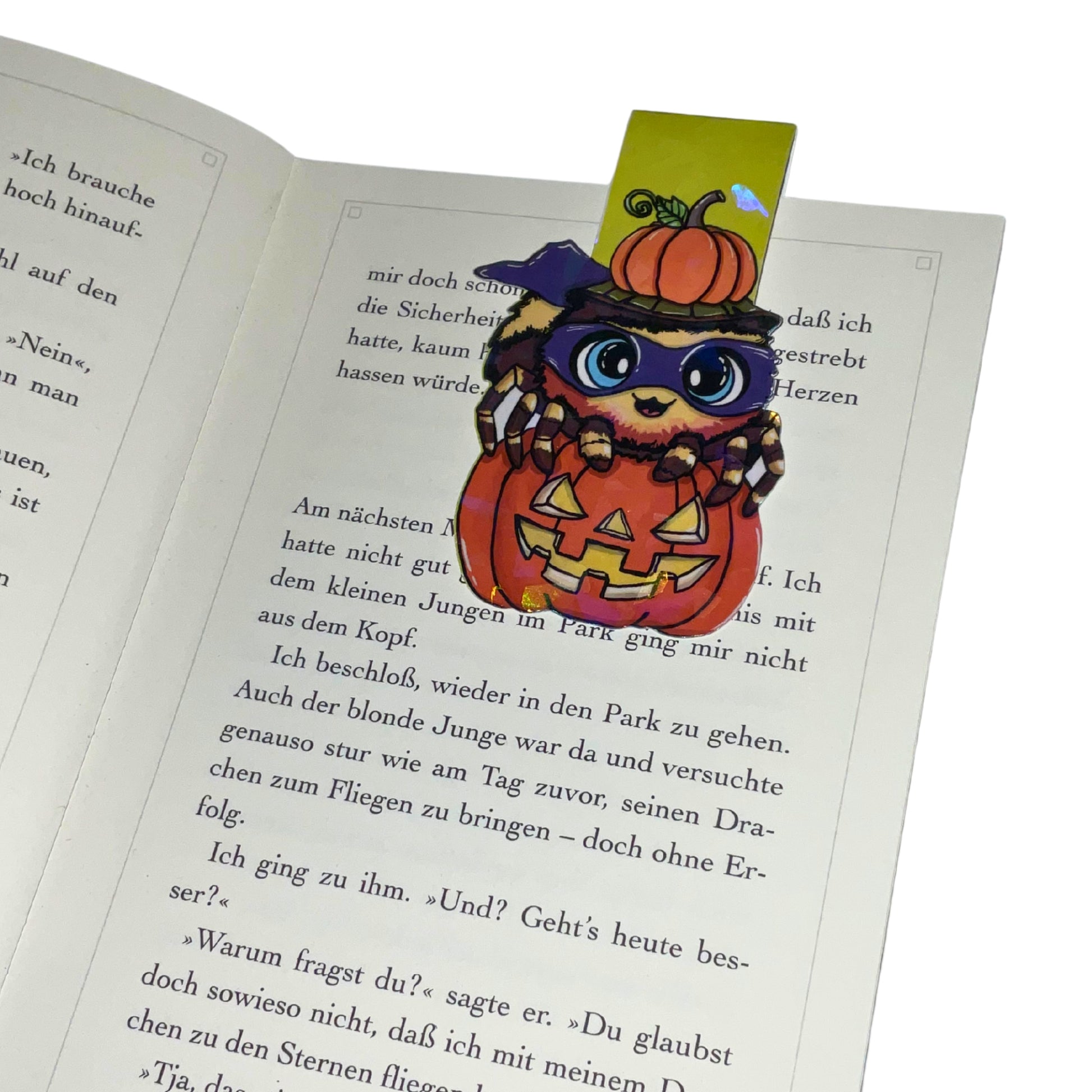 🕷️ Magnetisches Halloween Lesezeichen – Kleine Spinne Superheld 🦸