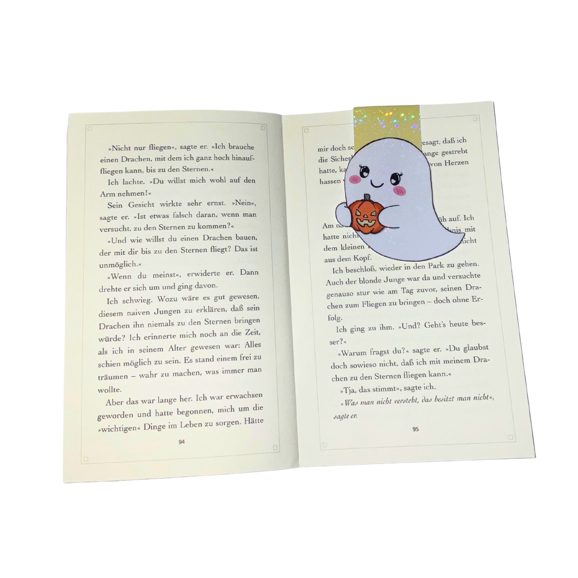 Ob in Romanen, Comics, Taschenbüchern, Schulbüchern oder Kalendern – das kleine Gespenst markiert zuverlässig deine Lieblingsseiten. Auch eine süße Geschenkidee für Halloween-Fans und Leseratten.